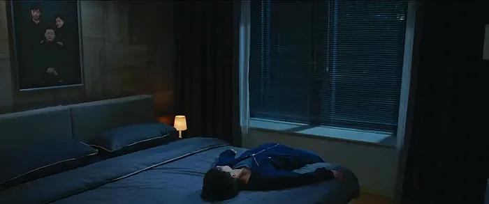 林见捷:我们给房子里设计了阻隔和转角,循着走廊你一眼是望不尽的,有很多被隐藏的东西。有一场戏的调度是,严硕从充满游戏背景音的涂伟房间走出来,听到蓝牙音箱在外放涂母冥想时的舒缓音乐,还有涂父书房里传来的巴赫钢琴乐。接下来一家三口的任何角色你都看不到,只是通过声音去认识他们,想象这些人的状态,更能感到他们各自都有一个专属领地,彼此互不打扰,就像一个个岛屿,只有严硕能听到所有搅和在一块的声音。从某种程度来讲,严硕是这一家人投射的总和。